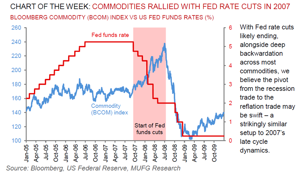 In contrast to June’s FOMC, yesterday’s meeting was rather a barren affair even though the policy rate was increased by 25bp to 5.25-5.5%, with the hike fully priced into the market and minimal changes to the (non-committal) accompanying statement. With our US rates strategists view that this likely concludes the Fed’s tightening cycle (absent a flaring in inflationary pressures), we recommend buying commodities at this point in the cycle which has proven to be a favourable strategy historically. Indeed, as we have recently catalogued, today’s set up bears striking resemblance to 2007’s late cycle wherein the global economy is below capacity and growing, yet inventories and spare capacity are depleted (see here). As we move towards a likely period of a Fed pause with the US seemingly slowing without derailing growth elsewhere, alongside a weaker dollar and policy easing in China, all against a backdrop of tight micro fundamentals, underscores the susceptibility of commodity markets to price gains (fashioning classic late cycle strong returns). On net, with Fed hikes likely now behind us, and should recessionary fears not materialise over the next six months, idiosyncratic risks leave the entire undervalued and under-owned commodities complex positioned favourably for tactical upside.