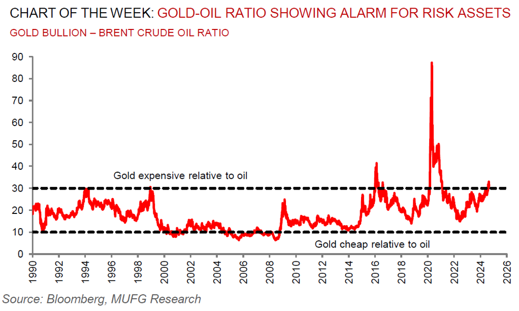 Gold and oil – critical commodities in providing guidance into global macro conditions – which are usually considered in a silo basis, are sounding alarm when considered conjointly. Today, as the Fed is attempting to soft land the economy and China continues to struggle to prop-up its ailing economy, it takes more barrels of crude oil to purchase a single ounce of gold bullion – a clear warning signal for risk assets. Investors need to part with 32 barrels of Brent crude for one ounce of gold – the highest since January 2021 – and we believe this upward trend has further to run to the upside. Intuitively, the relationship has logic. Crude oil powers the real economy, and when growth slows, prices are pressured, especially in a market where there’s ample spare production capacity to withstand any tightening shocks. In tandem, gold’s stellar performance (up +20% year-to-date) is a testament of its role as a geopolitical hedge of first resort in an uncertain operating environment. With Fed Chair Powell cementing rate cuts in September during the Jackson Hole symposium, alongside a confluence of unprecedented EM central bank demand, bullion-backed ETFs expanding, the risk of inflationary US policies after the elections from shocks including tariffs and rising debt apprehensions, reinforce why gold is up north of 20% year-to-date. Looking ahead, with our above-consensus call for gold breaching the USD3,000/oz threshold in 2025, and Brent crude remaining in an OPEC+ managed USD80-100/b corridor, we are convinced that the gold-oil ratio has further to run on the upside.