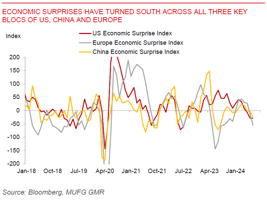 Markets will watch for the US JOLTS Jobs opening coupled with Eurozone GDP data out today. The US jobs opening will be important in terms of details such as the job vacancy rate, which has been highlighted by Fed Governor Waller as a key barometer of when the unemployment rate may rise more sharply when it drops below 4.5%. Meanwhile, the Eurozone GDP data should show some moderation in momentum, but also comes in the broader context of recent negative economic not just in the US, but across the board in China and also Europe.