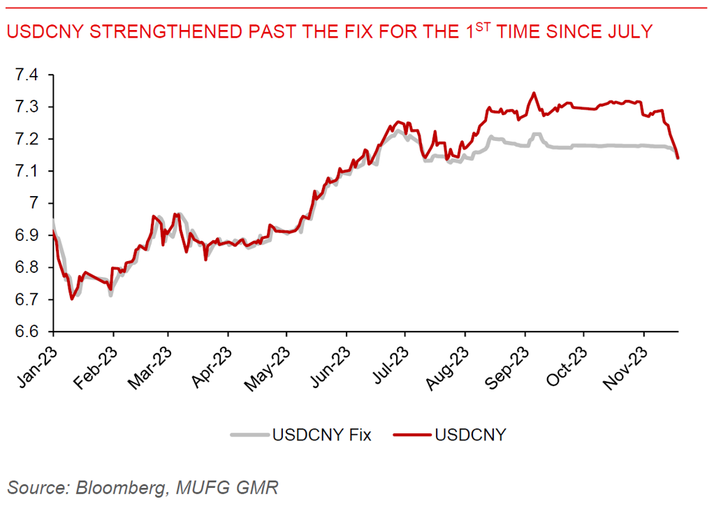 Asian currencies strengthened slightly against the US Dollar, led by USDCNH which fell below the 7.15 levels. Chinese authorities boosted the onshore USDCNY fix by the most since July, and this had a positive feed-through to other Asian FX pairs. Meanwhile, China’s central bank has encouraged some lenders to bring forward some lending to this year to try to smooth the credit cycle, providing further near-term support to the Chinese economy.