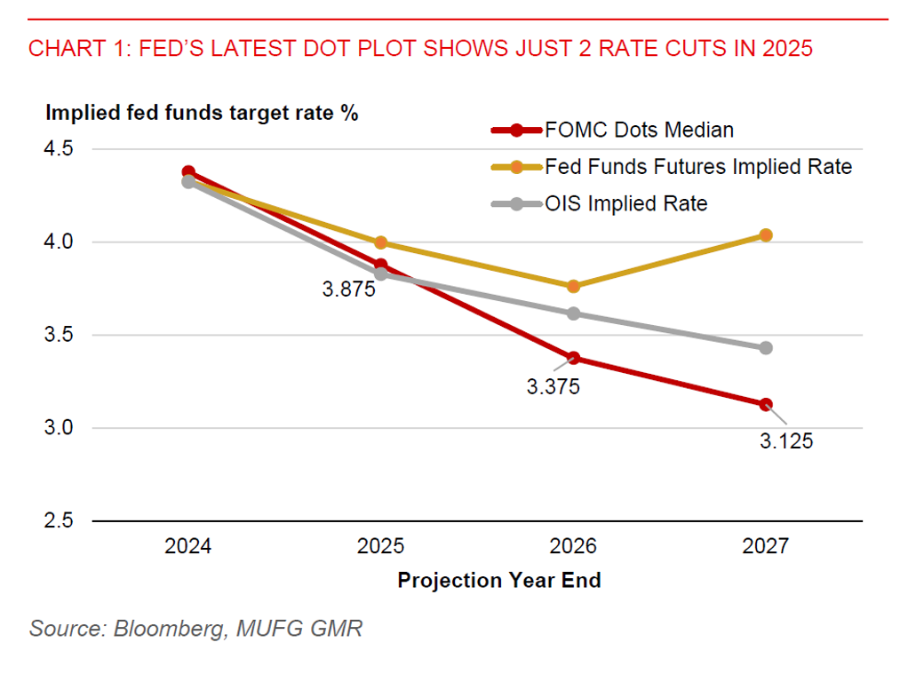 The Federal Reserve reduced interest rates by 25bps to 4.25%-4.50%, as we had expected. But it was a hawkish cut, supporting US dollar strength and pushing US yields higher. Fed Chair Powell has said that the Fed can be cautious with easing, is still on track to lower rates, but more inflation progress is needed for additional rate cuts. There's also uncertainty regarding Trump’s fiscal and trade policies, which could add to inflation pressures. Meanwhile, Powell has sounded confident that inflation will continue to decline. As for the Fed’s dot plot, a lack of further disinflation progress has led to the median dot showing just 2 rate cuts in 2025, which would bring the benchmark policy rate to 3.75%-4.00% by end-2025.