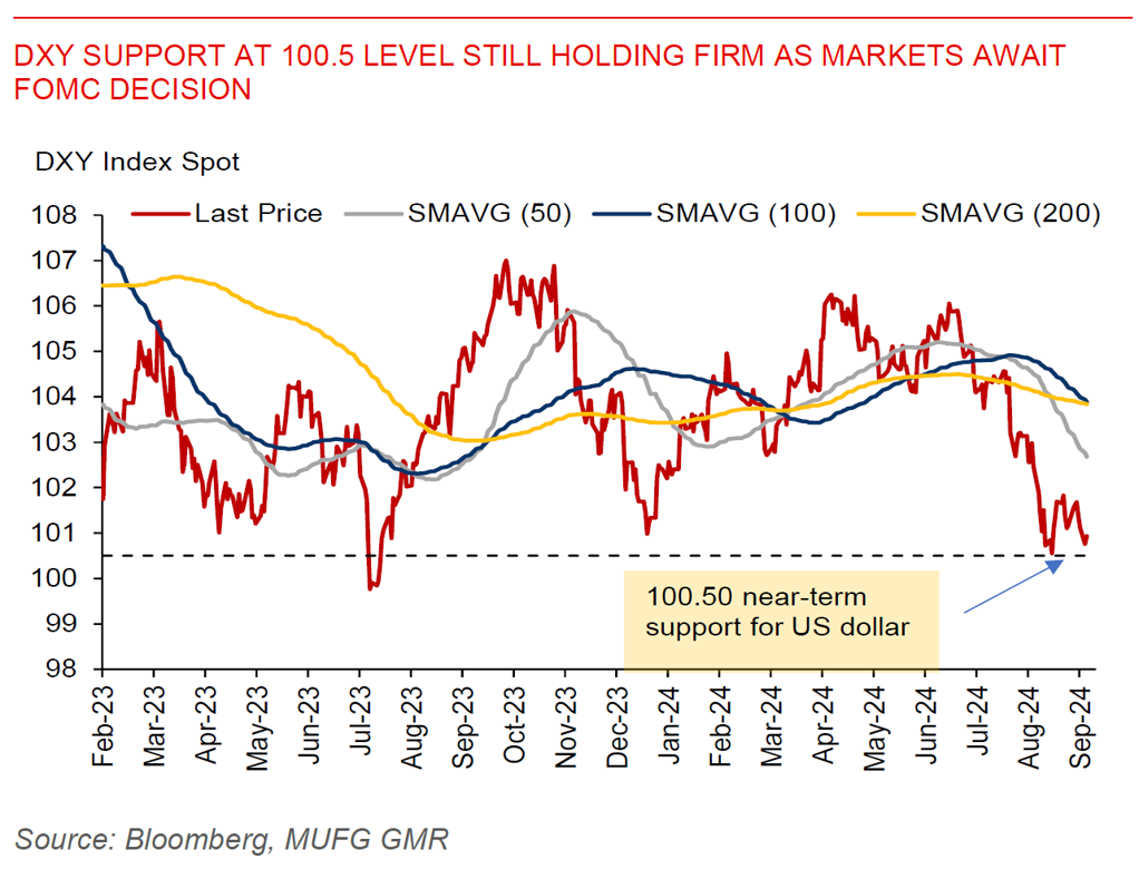 Market focus will turn to the FOMC rate decision today, as well as the Fed’s September dot plot. Markets are still pricing for a potentially outsized 50bps rate cut in September. US equities, bonds, and gold have typically performed well after the Fed starts lowering rates. However, US elections in November are going to matter too.