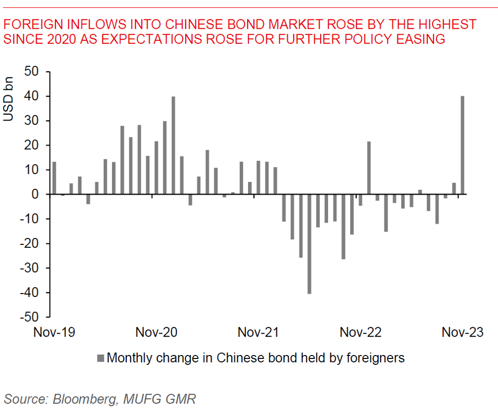 Asian FX were mixed with MYR and PHP underperforming (-0.35%), and INR outperforming (+0.11%). Chinese authorities said that they may lower reserve requirements and open market operations to provide “strong” support for reasonable growth in credit, according to Zou Lan, the head of PBOC’s monetary policy department. Expectations are growing for further monetary easing in China given relatively stable FX, with consensus looking at 10bps cuts in MLF and the Loan Prime rate out later this month. Foreign inflows into China’s bonds have also been strong based on latest available data. We are calling for 20-30bps of rate cuts with 30-50bps of RRR cuts in 2024 (see Annual Foreign Exchange Outlook 2024). Meanwhile, Indonesia’s FX reserves rose to US$146bn from US$138bn the previous month, driven in part by valuation gains as the Dollar weakened, and driven up by the government’s foreign loan withdrawal according to Bank Indonesia.