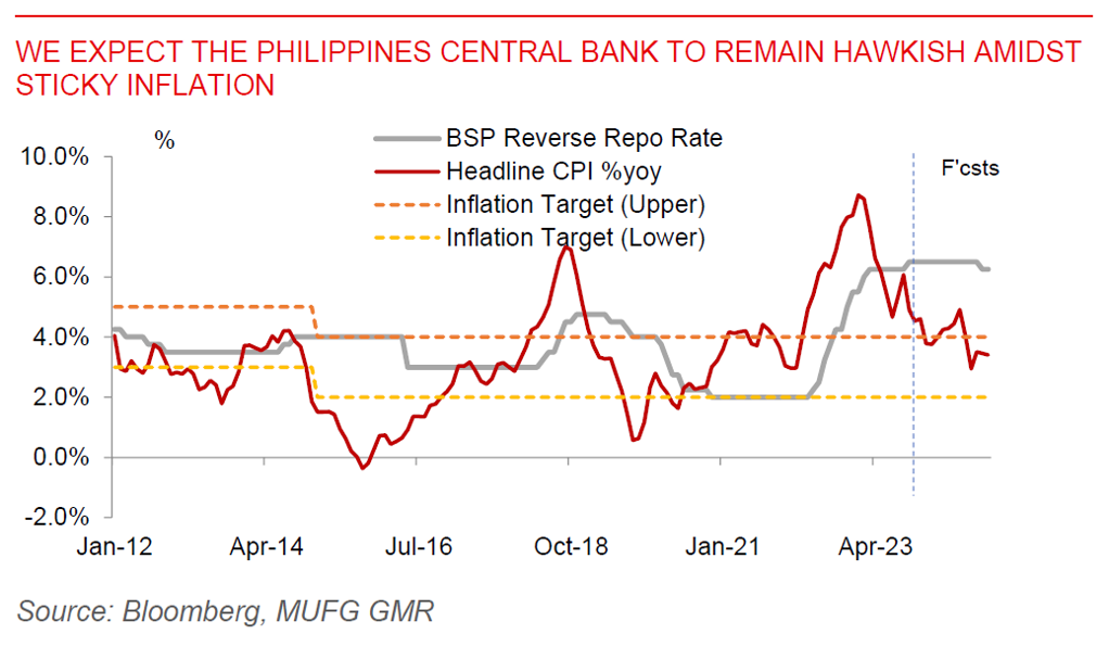 Asian currencies were mixed against the Dollar. The focus for markets later today will be China’s inflation print, where markets is expecting a weak print at -0.1%yoy and -2.7%yoy respectively. There are some growing market expectations for further rate cuts by the Chinese central bank given soft inflation prints and still narrow economic recovery. The Philippines will release its 3Q GDP estimates, where the consensus is expecting some improvements in economic activity but for growth to remain below trend at 4.7%yoy. We see BSP on an extended rate pause from here and expect the 1st rate cut only from 2H2024.