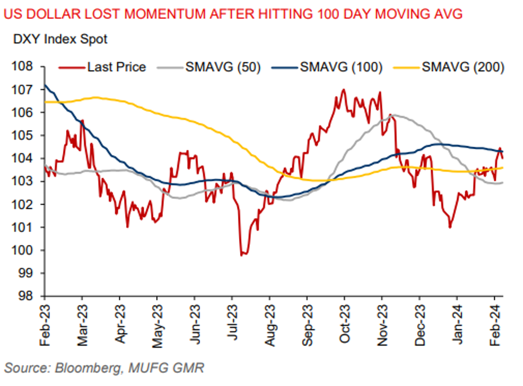 ECB’s executive board member Isabel Schnabel warned against cutting rates too early given a resilient labour market and sticky services inflation. BOE Deputy Governor Sarah Breeden has become less worried about whether to raise rates, but more evidence of disinflation is needed for a policy pivot.