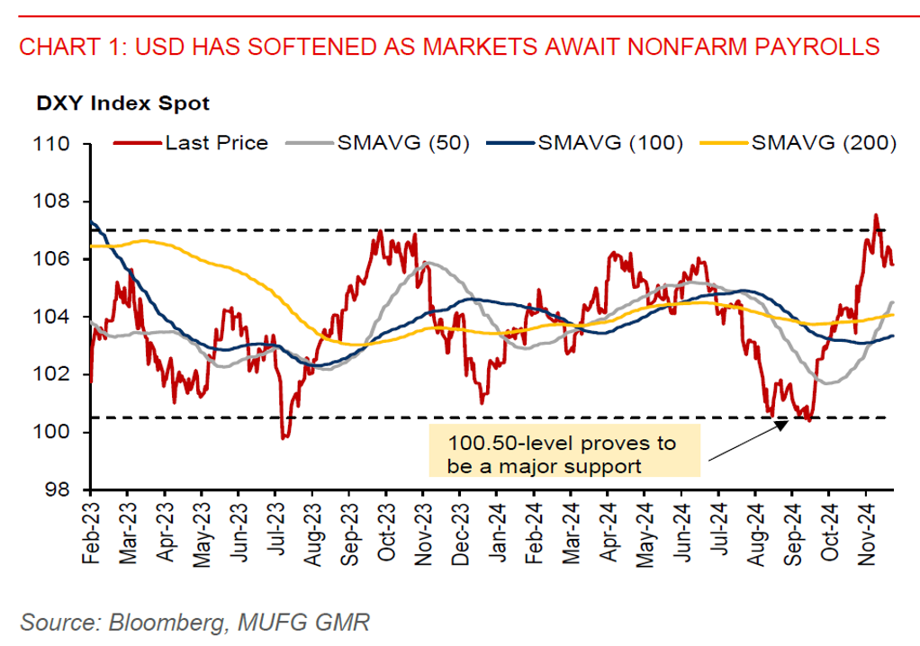 Meanwhile, political uncertainty in France persists. French President Macron now has to find a replacement for Prime Minister Michel Barnier, whose government has been toppled by a “no confidence” vote in parliament. The 2025 budget has also not been passed. But for now, markets have not priced in greater political risk, with the spread between France’s and Germany’s 10-year yield narrowing to 78bps after nearly touching 90bps, while EURUSD bounced by 0.5%.