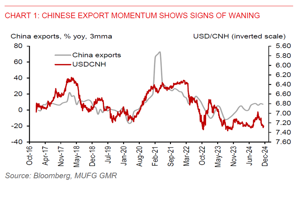 Asian FX markets have been relatively calm against the US dollar as they await the US CPI data later today and the start of China’s 2-day annual Central Economic Work Conference (11-12 December), where economic priorities will be crafted for the year ahead. A more pro-growth policy stance adopted by Chinese policymakers at the conference could provide near-term support for the CNY, though any positive impact would be limited given tariff concerns. Moreover, China’s export growth slowed to 6.7%yoy in November from 12.7%yoy in October. On a sequential month-on-month basis, we estimate Chinese exports had also slowed in November.