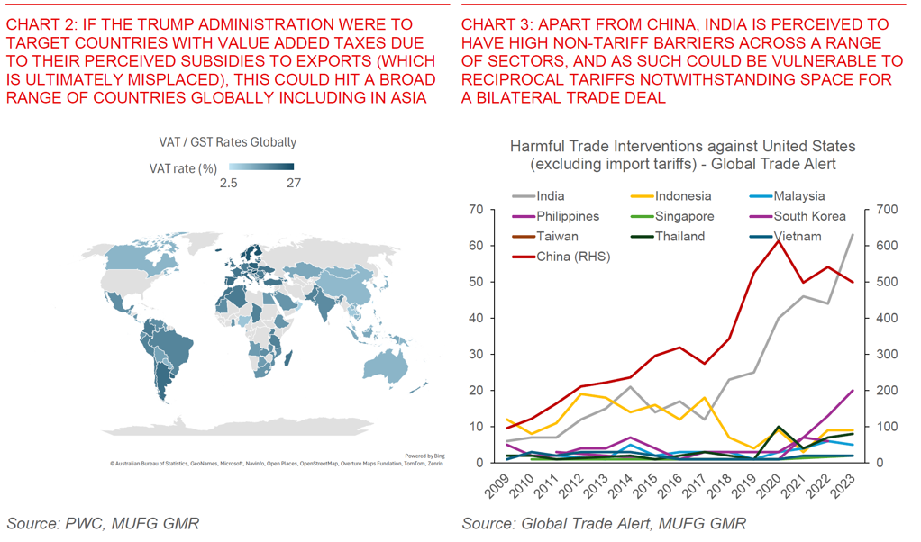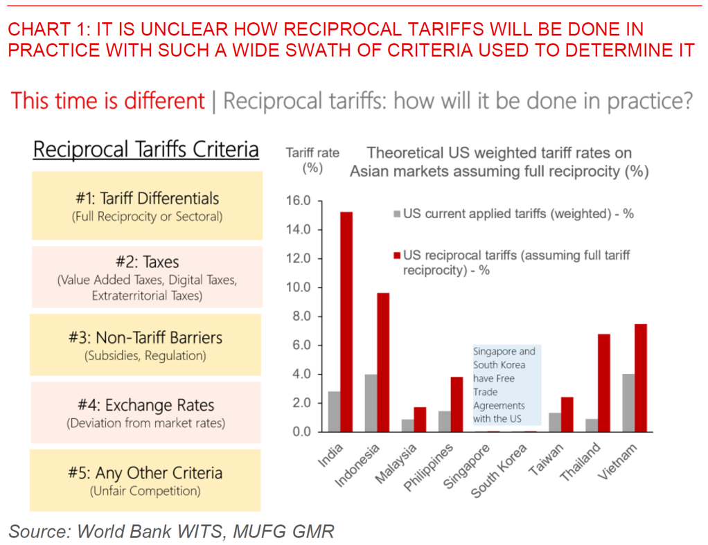 While we think that the market’s skepticism around Trump’s reciprocal tariff plan may make sense, the broad criteria that the administration is using to determine these tariffs which includes not just tariff differentials but also taxes (includes VAT), non-tariff barriers, and exchange rate misalignment raises the possibility that a whole swath of countries will be targeted in Trump 2.0.