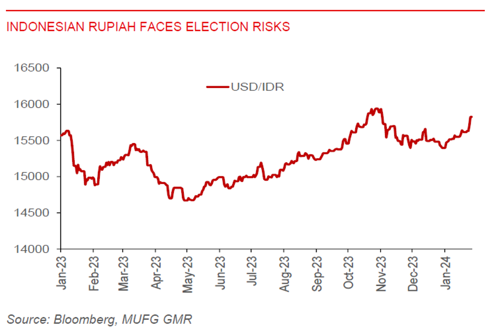 The Indonesian rupiah is facing election risks. With President Jokowi constitutionally barred from running for a third term, Indonesia will be electing a new president on 14 February.