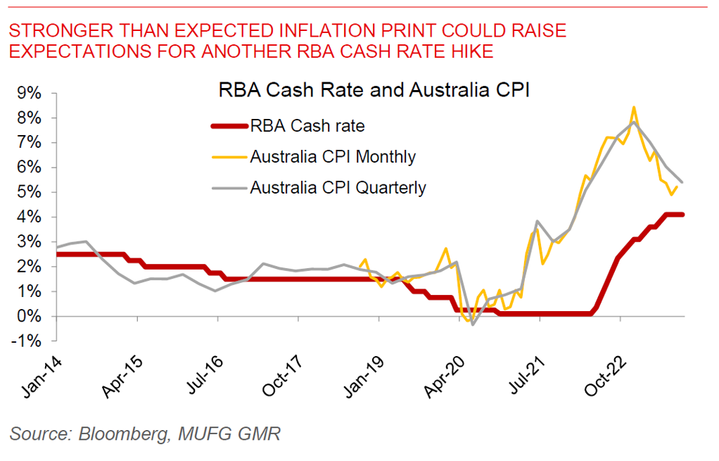 Australia released 3Q CPI estimates, which surprised on the upside at 5.4%yoy, with other measures of underlying inflation such as the trimmed mean and weighted median also stronger than expected. This could raise expectations for RBA to hike its cash rate further, on the back of Governor’s Bullock’s recent hawkish speech where she said the central bank will not hesitate to raise rates further if the inflation data shows a material rise in price pressures. AUDUSD bounced up by 0.42% on the back of the data.