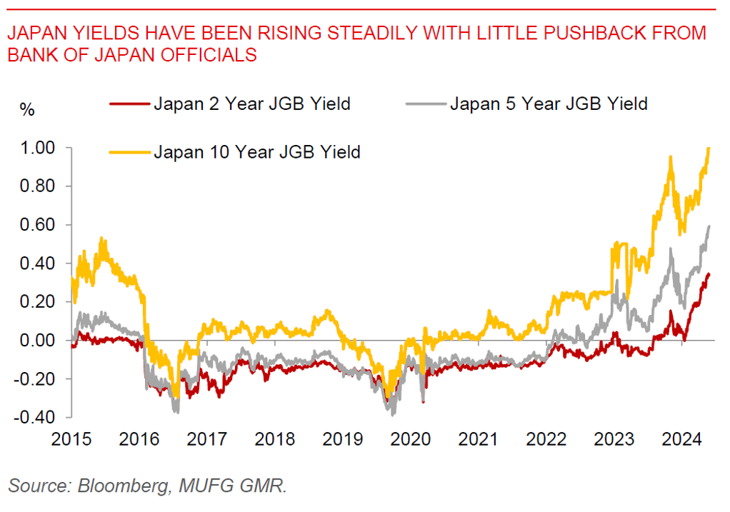 With several key markets including the US and UK out on holiday, the focus shifted to other markets, including comments from key Bank of Japan and European Central Bank officials. Bank of Japan held its annual international conference, with both BOJ Governor Ueda and Deputy Governor Uchida speaking. BOJ Governor Ueda pledged that the bank will “proceed cautiously” after making progress in moving away from zero-inflation expectations. Deputy Governor Uchida was more equivocal, pronouncing that “this time is different” with the battle to end deflation in sight, notwithstanding the big challenge still to anchor inflation expectations at 2%. He highlighted that deflation was a both an economic phenomenon and a “social norm”, both of which were likely to change as labour supply constraints bite and as Japanese employers turn more willing to raise wages.