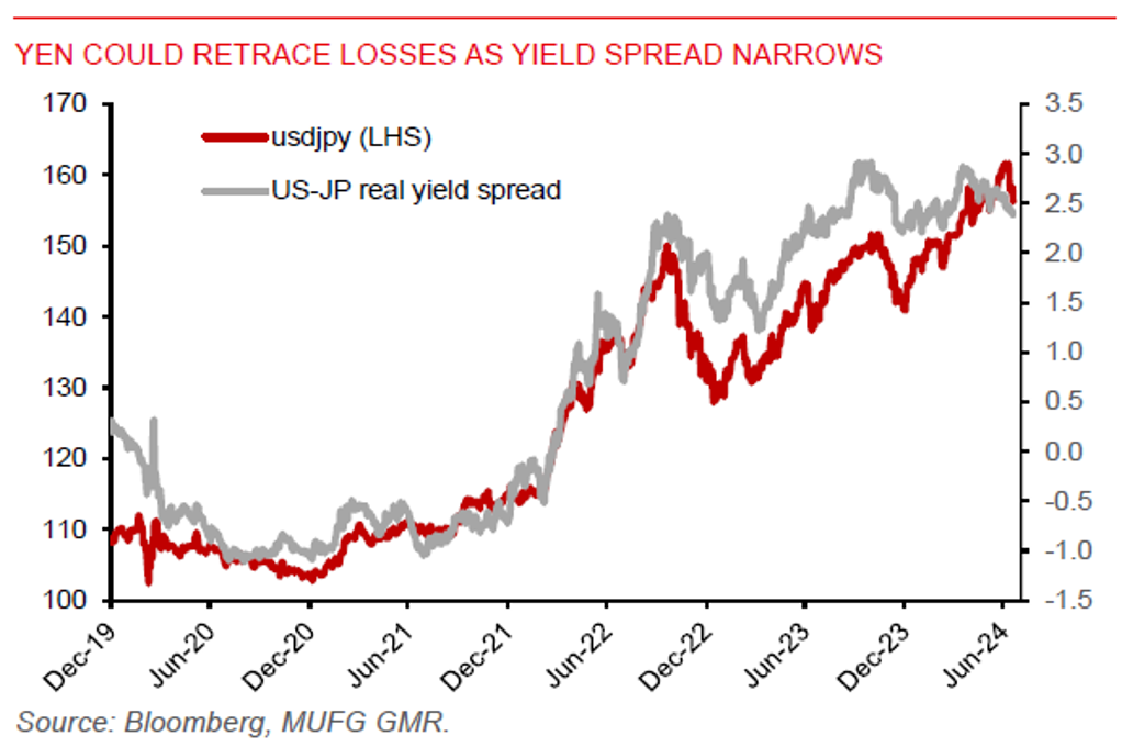 The DXY US dollar index gained about 0.8% over the past 2 trading sessions on Thursday and Friday. This helped the US dollar to post its first weekly gain during the month. We think the dollar may find it hard to outperform this year, with market expectations for the Fed to finally cut interest rates. With the BOJ set to cut JGB purchases and gradually normalize monetary policy amid rising inflation and wage expectations, monetary divergence between Fed and BOJ suggests scope for a stronger yen.