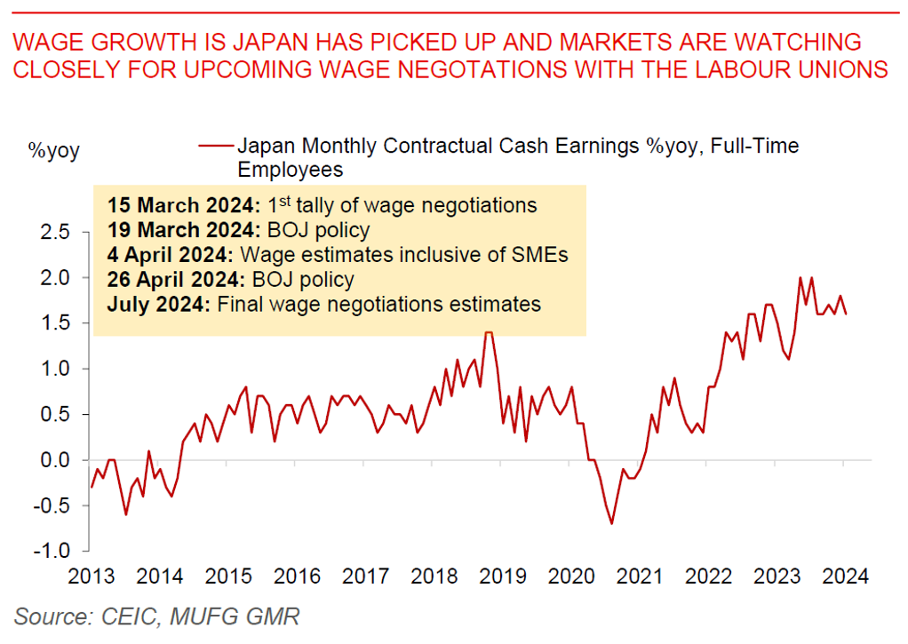Bank of Japan Board member Junko Nakagawa – who is viewed as a more dovish member of the BOJ – said that officials are getting more confident over the strength of wage growth, and that there are clear shifts in businesses’ behaviour for setting wages. On the back of these comments, Rengo, the Japanese Trade Union Confederation, released data showing an average pay hike demand of 5.85%, the highest in 30 years, and stronger than the 4.5% demand seen last year. The actual preliminary results of the wage negotiations will be out on 15 March, and ahead of the Bank of Japan meeting on 19 March, and the OIS markets have now built in a 70% probability of rate hike in the March meeting, from just 41% earlier this week.