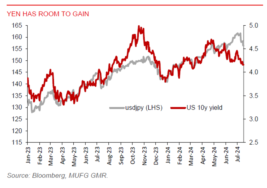 Asian currencies have strengthened against the US dollar, with JPY, (+1.7%), IDR (+0.5%), THB (+0.6%), and KRW (+0.6%) leading gains in the region. USD 1y swap suggests there’s scope for a stronger yen. Meanwhile, Bank Indonesia held its policy rate at 6.25% yesterday. This, along with dovish expectations for Fed rate cut, has also supported the rupiah for now. But the risk is that market expectations for more than 2 US rate cuts this year may be optimistic. An unwinding of dovish expectations may contain dollar weakness. We also think the rupiah still faces some crosswinds ahead, given domestic fiscal uncertainty. BI sees the Fed cutting rates in November, with a likelihood that it could also ease policy in Q4. But we think BI is in no rush, with growth resilient and inflation manageable. The rupiah outlook will be key to monetary policy. For now, we keep our forecast for BI to cut rates in early 2025.