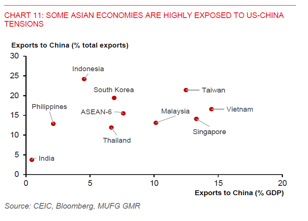 - A victory for Trump would likely hurt the outlook for ASEAN economies and FX. We anticipate that there are significant US tariff hikes on US imports from China, which will hurt Chinese demand with second round effects via lower business confidence. ASEAN’s fortunes are intertwined with China, so there would be huge negative spillover impact on ASEAN economies, mainly via lower trade and investment. Vietnam’s electronics exports to the US could also be targeted by Trump, in a bid to halt the diversion of Chinese electronic products to the US via Vietnam since 2018, while a blanket 10% US tariff hike on everyone else would amplify the shock.