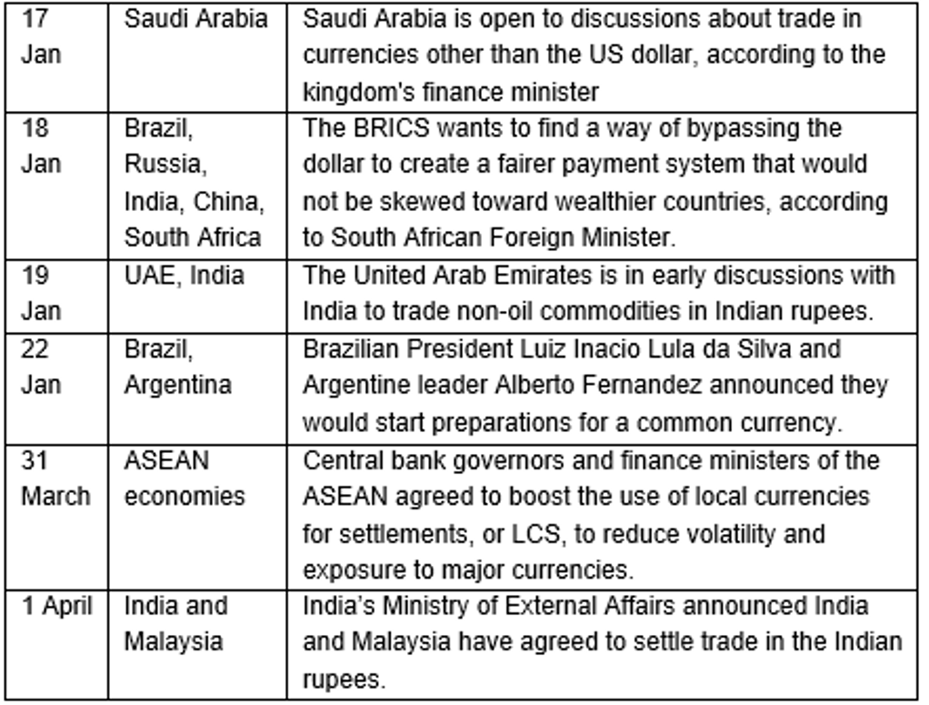 Special focus: Global de-dollarization will continue to accelerate, driven by underlying new geo-political and economic order. However, it will still be a long process and US dollar will remain dominant in foreseeable future. Comparatively, we expect more progress of ASEAN and Asia’s de-dollarization in payment area.