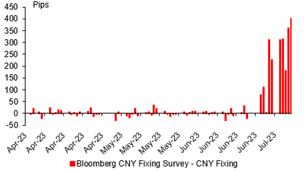 PBOC CONTINUED TO SET LOWER-THAN-EXPECTED USD/CNY MIDPOINT FIXING LAST WEEK