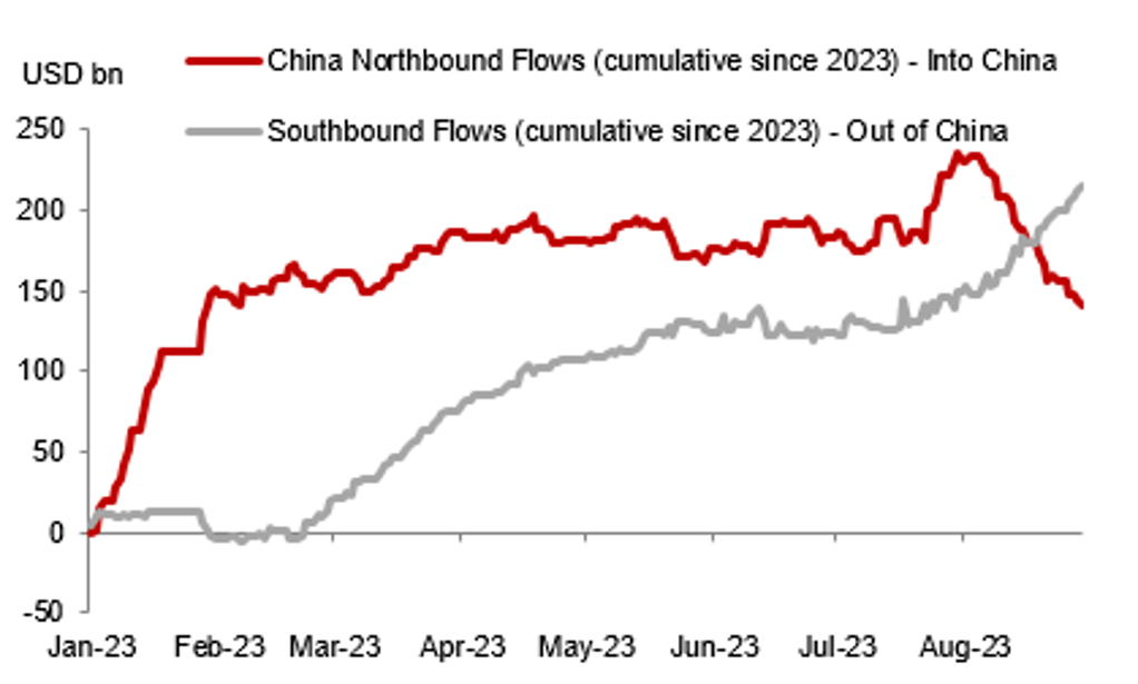 BOTH FOREIGN AND RESIDENT EQUTIY OUTFLOWS ACCELERATED OVER THE PAST MONTH IN CHINA