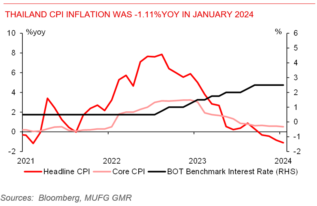 Thailand's CPI inflation was -1.1%yoy in January 2024