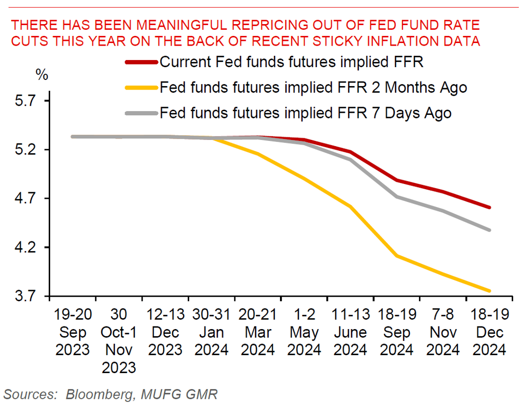 Meaningful repricing of Fed Fund rate expectations for 2024