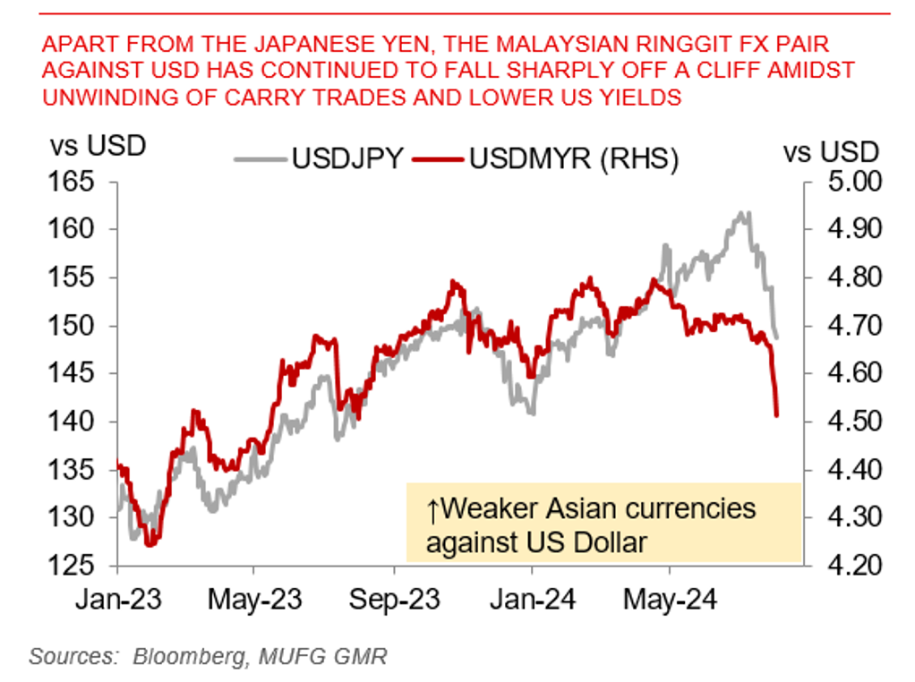 Apart from the Japanese Yen, the Malaysian Ringgit FX pair against USD had continued to fall sharply