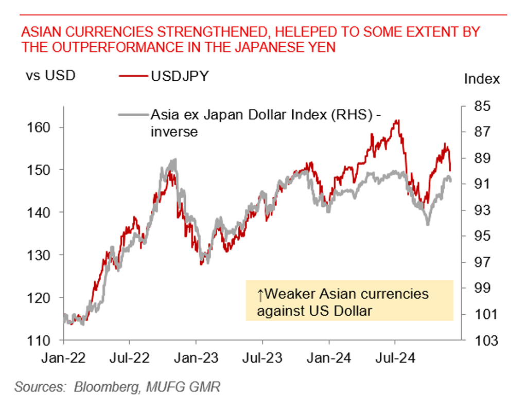 Asian currencies strengthened, helped to some extent by the outperformance in the Japanese Yen