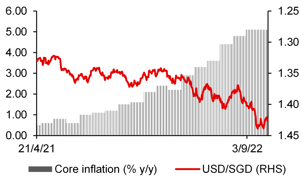 USD/MYR continued to move in a bid tone over the past week. The pair broke 4.73 on Friday’s session and attention is now shifting to 4.75. This comes despite an increase in Brent prices earlier the week, although the rise has partly reversed by Thursday. Crude palm oil prices also rebounded amid concerns on flood risks. USD strength from hawkish Fed rate hikes continues, pushing MYR weaker alongside other currencies. We expect a pause in BNM monetary policy on 3 November. This comes as inflation eased to 4.5% y/y in September from 4.7% a month ago. This was helped by lower food inflation. Core inflation headed to 4% y/y from 3.8% a month ago. For the week ahead, 4.75 is the immediate resistance before 4.7850 next.