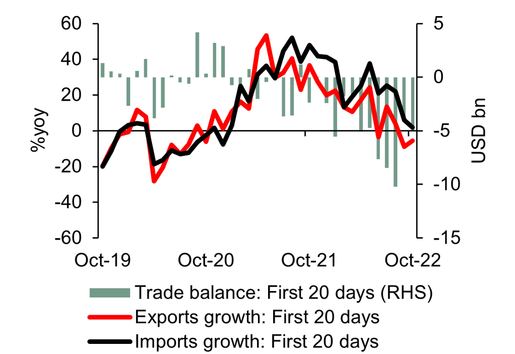 The PHP was the only AXJ currency that strengthened against the USD last Friday with the size of its gain at 0.3%. This was mainly due to Finance Secretary Diokno’s strongly worded vow to prevent USD/PHP from breaching 60.00 and his promise to President Marcos to make USD/PHP return to 55.00 “eventually”. In addition, he said that the authorities are ready to use an additional USD10 bn to defend the PHP. This follows latest available data showing a USD4.4 bn decline in foreign reserves to USD93.0 bn in September. This brings the total decline in foreign reserves so far this year by USD15.8 bn. A drawdown of another USD10 bn in foreign reserves will bring the import cover by a month lower versus the current 7.6 months. This is still higher than the IMF’s recommendation of a minimum import cover of three months, but we think the BSP is likely to maintain a higher buffer to save for a rainy day.