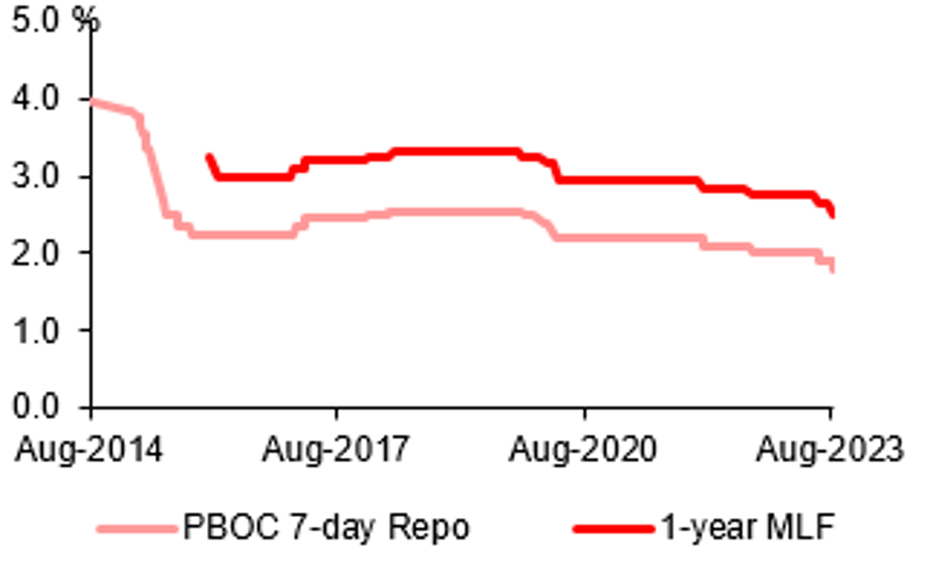 PBOC CUT ITS 1-YEAR MLF RATE AND 7-DAY REPO RATE ON 15TH AUGUST