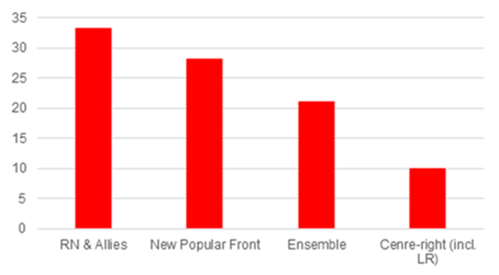 The other parties including President Macron’s centrist alliance and left-wing New Popular Front coalition are now planning to prevent the RN Party from winning a majority in parliament in the second round of the elections. French Prime Minister Gabriel Attal stated “our objective is clear: to prevent the National Rally from having an absolute majority. A view shared by Jean-Luc Melenchon, the leader of the far left France Unbowed party who stated “nowhere we will allow the RN party to prevail” and would encourage third-placed candidates from the left-wing group to withdraw. In more than half of the 577 constituencies, three people qualified for runoffs. In those situations, the third place candidate can withdraw to boost the chances of another party defeating the RN party. President Macron’s Renaissance party has also said it would pull third-placed candidates where it would help those who respect “the values of the republic” beat the far-right although it is not clear whether Macron’s party will withdraw in races where the far-left would benefit. The deadline for filing for the second round is at 6pm on Tuesday. In light of the results so far from the first round of the elections, it leaves the two most likely outcomes as i) a hung parliament with no absolute majority and ii) a RN cohabitation government. The number of constituencies RN won and the fact that the left and centre are neck and neck in some constituencies does not make it an easy decision for which candidate to withdraw and both factors could still increase the risk of outcome two (RN cohabitation government) that would be more unfavourable for the euro. We are not expecting today’s relief rally for the euro to be sustained for long ahead of the second round of the election.