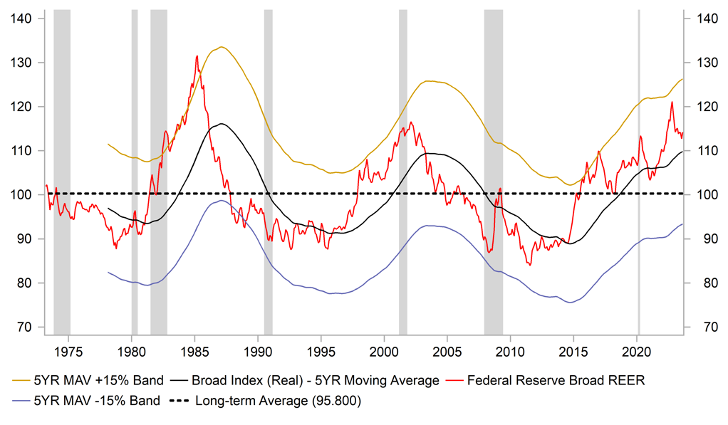 USD HIGH IN REER TERMS LAST YEAR REACHED HIGHEST SINCE 1985