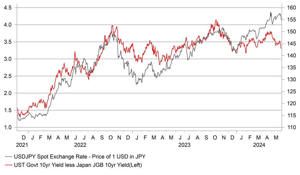 The 2-day drop in USD/JPY totalled 1.55% yesterday and was in fact the largest since December (when the recent intervention is excluded) last year when USD/JPY was falling sharply due to easing US inflation fears and a liquidation of short JPY positions by Leveraged Funds. This move in US yields (10yr -28bps in four days) looks more growth concerns driven than inflation optimism. The ISM Manufacturing index on Monday was much weaker and the JOLTS data yesterday saw job opening drop close to 8mn, the lowest since early 2021 – job openings are now not far from fully retracing the post-covid surge. The yen has weakened back today possibly on relief that the wage data from Japan was not stronger and on US yields stabilising but the price action yesterday in particular was still notable.