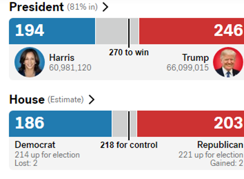Former President Donald Trump is on his way to the White House again with remaining votes in Pennsylvania not enough to lead to Harris taking a state that is looking essential for a road to the White House for the Democrats. With Pennsylvania lost Associated Press has just called the election for Trump. EUR/USD is now 1.9% lower and we see scope for this drop to extend further lower from here. If anything this election result is looking closer to a landslide relative to how close this election was anticipated to be. The figures look to be showing Trump winning over 300 electoral college votes that will be a huge endorsement of the policies he has been campaigning on. Trump won 304 electoral college votes in 2016 but a key difference in 2024 is that Trump is on track to win the popular vote which will reinforce Trump’s determination to implement the policies he campaigned on. We are reportedly going to hear from Tump soon which may come prior to an official call on his victory but that won’t matter on this occasion. Harris has indicated she will not speak to the nation until tomorrow when she will of course be conceding defeat.