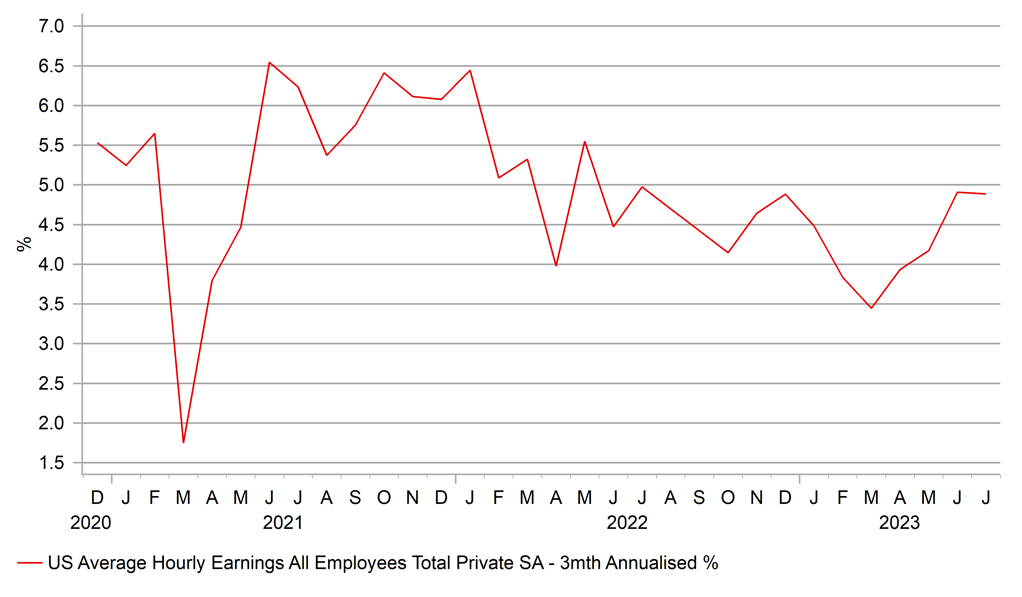 The US dollar has rebounded from the weakest levels recorded after the NFP data on Friday with investors assessing the jobs data and seeing enough in the data to suggest the US economy remains resilient. Yields in the US have drifted higher today from the lows recorded on Friday. This move has helped reinforce support for USD/CAD after the data from Canada on Friday was weaker than expected. Employment fell by 6.4k in contrast to an expected 25k gain. However, there were two caveats that likely mean the market will not read too much into the labour market weakness. Firstly, the drop in employment in July followed a strong 59.9k gain in June while more importantly, the annual hourly wage growth accelerated from 3.9% to 5.0%, indicating the June reading was an outlier on the weak side.