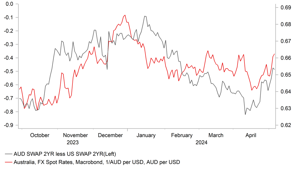 The AUD/USD has also softened in response to the broad-based US dollar rebound at the start of this week. The dollar index has now fully reversed all of the losses sustained just after the release of the weaker than expected nonfarm payrolls report on Friday. The report revealed both softer employment growth and average hourly earnings growth in April providing some much-needed reassurance for the Fed after the recent run of stronger US activity and inflation data. Furthermore, the ISM services survey for April was added to other leading indicators signalling slower growth ahead for the US economy and labour market. In response the US rate market has moved to price back in a higher probability of multiple Fed rate cuts by the end of his year which should help dampen the US dollar’s upward momentum in the near-term.