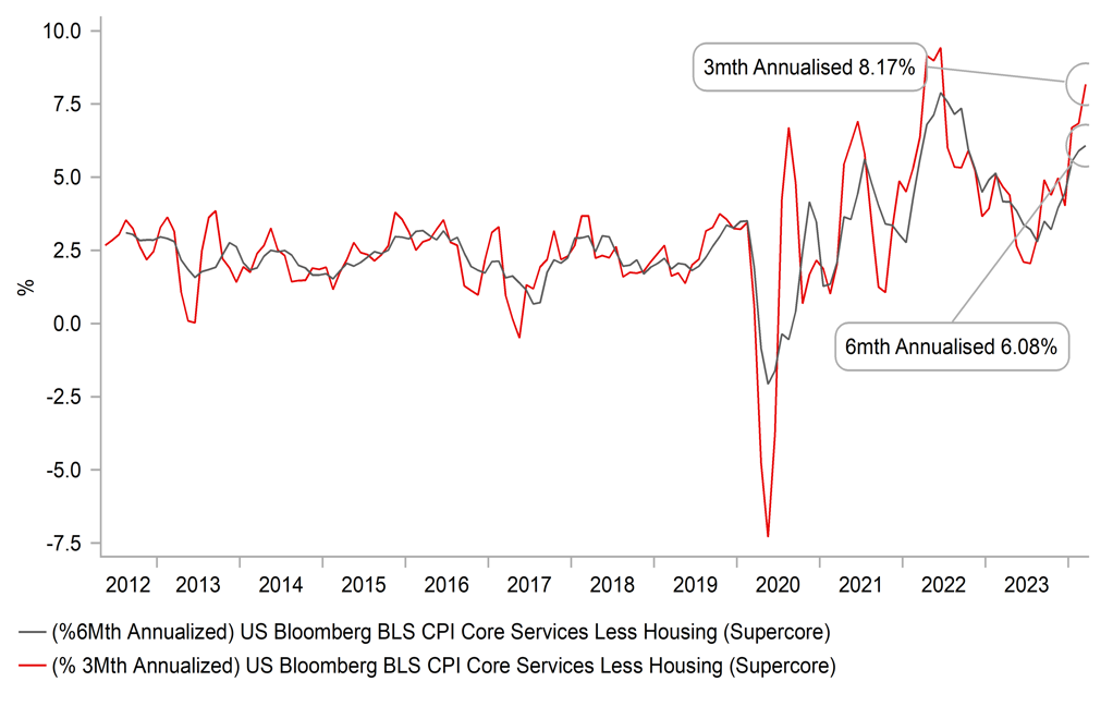 US SUPERCORE CPI – 3MTH & 6MTH ANNUALISED CHANGE