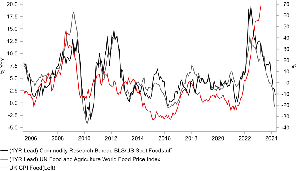 The resilience of the UK economy at the start of this year alongside still uncomfortably strong inflation and wage growth keeps pressure on the BoE to keep raising rates. As we highlighted in our latest FX Weekly report (click here), it will hard for the BoE to signal that it is close to pausing their rate hike cycle at today’s policy meeting. We expect the BoE to deliver another 25bps hike in response to the risk of more persistent inflation pressure and to leave the door open to further hikes. We are currently forecasting one more hike that would lift the policy rate to a peak of 4.75% by the summer. The narrowing policy divergence between the BoE and Fed continues to support our outlook for cable to move closer to the 1.3000-level. Inflation has remained more elevated in the UK than in the US as it is taking more time for the impact of lower energy and food prices to feed through to consumers. The energy CPI component has just started to fall back more sharply in the UK while the food CPI index has not yet peaked hitting 19.6%Y/Y in March even as the UN’s agricultural & food price index peaked just over a year ago. The BBC did though report some encouraging news yesterday that UK supermarkets (Tesco, Aldi, Lidl & Sainsbury’s) are starting to cut the price of butter and bread. Consumers have not yet benefitted from the drop in food prices as retailers have contributed to profit-led inflation. It would be good news if this dynamic is coming to an end and food price inflation falls back sharply with a lag in the coming years.