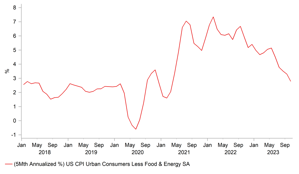The US dollar has traded on a softer footing overnight ahead of the release later today of the latest US CPI report for November. It has resulted in USD/JPY falling back to an intra-day low overnight of 145.23 after hitting a high yesterday at 146.59. The yen has broadly recovered some lost ground overnight as well after correctly sharply lower at the start of the week after the BoJ pushed back against recent market speculation over the possibility of an imminent exit from negative rate policy at next week’s policy meeting on 19th December. Our analysts in Tokyo are continuing to forecast the first BoJ rate hike at the following policy meeting on 23rd January when they expect an exit form negative rate policy for the first time since the start of 2016. The direction of travel for BoJ remains clear that they are moving closer to raising rates, and we expect the BoJ to have enough confidence in the outlook for stronger wage growth next year to begin rate hikes in January. As a result, it is likely that yesterday’s setback for the yen will prove short-lived.