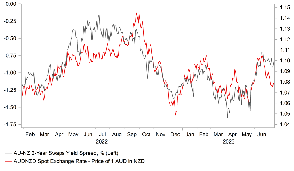 The decision of the RBNZ today to keep its policy rate unchanged for the first time in the tightening cycle is no surprise and was flagged in advance with the acknowledgement by the RBNZ back in May that slowing demand and a surge in immigration would help bring inflation back to within its target range of 1.0% - 3.0% by next year. Back in May it also concluded that the policy rate would be on hold until Q3 2024 but the weakening housing market and broader economy will likely mean inflation comes down faster than the RBNZ is forecasting and hence the window for a rate cut will come sooner than it expects. Today the RBNZ said the policy rate would remain on hold for the “foreseeable future”. In our view a rate cut at the tail-end of the year or certainly in Q1 2024 seems likely. We expect that to result in NZD underperformance relative to the rest of G10. The feed-through of previous tightening will be part of the story in seeing inflation come down faster than expected. Indeed, the RBNZ admitted today that the impact of past tightening has yet to fully feed through to the housing market.