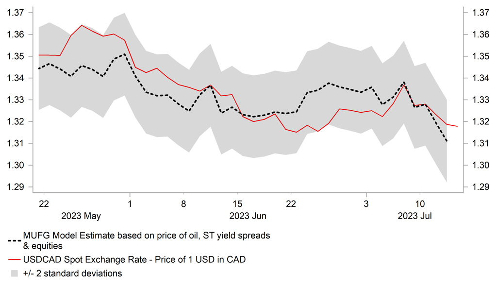 Yesterday’s developments have increased the likelihood that USD/CAD will fall further back below the 1.3000-level for the first time September of last year. While the weaker than expected US CPI report has dampened expectations for further Fed hikes beyond this month, the BoC’s policy update has left the door open to further hikes after delivering back to back 25bps hikes in recent months. It has been an abrupt hawkish turnaround from the BoC who had paused their hiking cycle between February and May. Governor Macklem delivered a clear signal yesterday that the BoC is prepared to hike again if needed although he also noted that the BoC is close to the end of their tightening cycle.