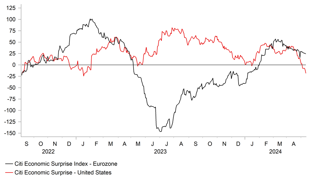 The main challenge in the week ahead to our view that US rates and the USD are in the process of peaking out will be the release of the latest US inflation reports (CPI & PPI) for April. A fourth consecutive monthly upside inflation surprise is required to inject fresh upward momentum into US rates and the USD in the near-term. Whereas in line or softer prints could see the USD give back more of the gains from the start of this year. A fourth consecutive upside inflation surprise would increase the likelihood of the Fed dropping more rate cuts from their updated plans at the next FOMC meeting on 12th June. It is still difficult though to see the Fed completely dropping plans for rate cuts this year after planning 3 cuts not so long ago in March. The Fed’s reluctance to deliver an even more hawkish policy update at their last policy meeting on 1st May is another reason why the USD has lost upward momentum recently.