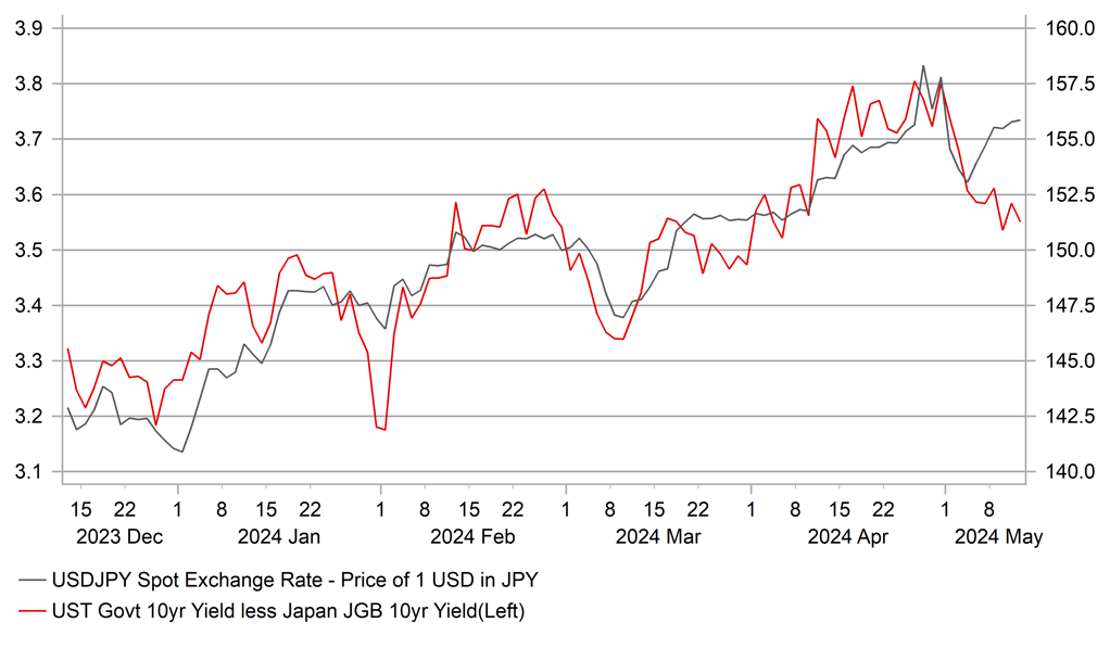 As we highlighted in our latest FX Weekly report (click here) the BoJ appears to becoming under more pressure from the government to tighten policy in response to yen weakness. After meeting with Prime Minister Kishida last week, BoJ Governor Ueda changed his tone on the yen when he stated that a policy response maybe required and that FX was an important factor impacting inflation. The minutes from the last BoJ meeting also indicated a more hawkish tone by expressing more concern over yen weakness. We believe that recent comments support our forecast for the BoJ to tighten policy sooner by raising rates again by 15bps in July although we can’t rule out an earlier move in June. An earlier hike in June though could look like the BoJ has given in to political interference. We still believe there is room for yields to continue adjusting higher in Japan given that terminal policy rate expectations remain too low. So far the ongoing adjustment higher in Japanese yields has had limited impact on the yen as it has been offset by higher US yields. However, it does not mean that the tightening of BoJ policy is not important. It should help to bring USD/JPY back below the 150.00-level later this year when the Fed starts to cut rates as well, and there is a clearer narrowing of policy divergence between the BoJ and Fed.
