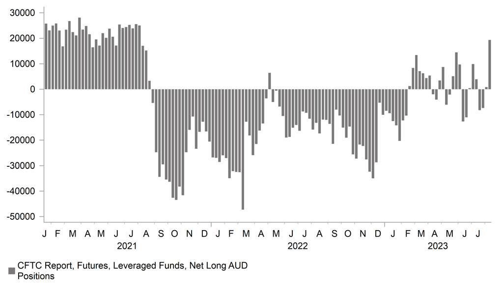 LEVERAGED FUNDS’ LONG AUD POSITION LARGEST SINCE 2021
