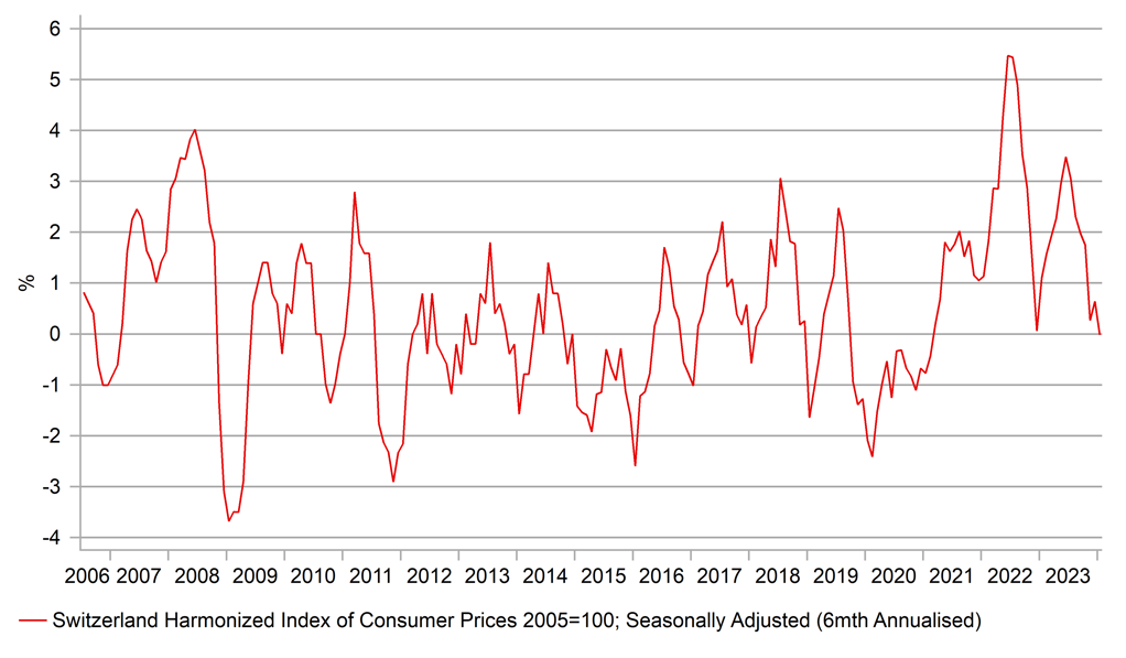 SWISS EU HARMONISED INFLATION 6MTH ANNUALAISED AT ZERO PERCENT