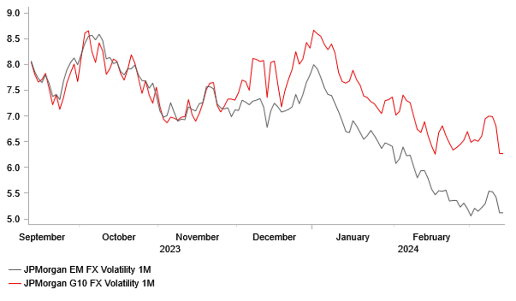 FX VOL CONTINUES TO FALL SUPPORTING FX CARRY TRADES