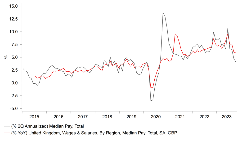 We would argue that there is something in this data for both the doves and the hawks on the MPC. While labour demand is stronger in this report, there remain signs of a trend of softening labour demand in the vacancy data and the moderating wage growth. In the context of the sharp disinflation in CPI that we will likely see tomorrow, the majority of the MPC will likely see enough here to justify the current stance of remaining on hold, especially with around half of the monetary tightening still to hit the real economy. There is not enough in this jobs report to see big FX or rates moves and GBP is likely to remain in a narrow trading range, albeit to the firmer side, ahead of the US CPI this afternoon and the UK CPI data tomorrow.