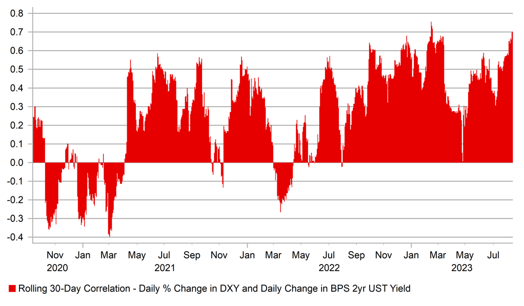 USD / 2YR YIELD CORRELATION BACK TO HIGHS FROM FEBRUARY