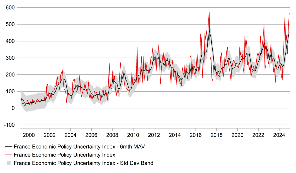 FRANCE ECONOMIC POLICY UNCERTAINTY HIT CLOSE TO A RECORD HIGH AT THE END OF 2024 – SOME DECLINE NOW POSSIBLE