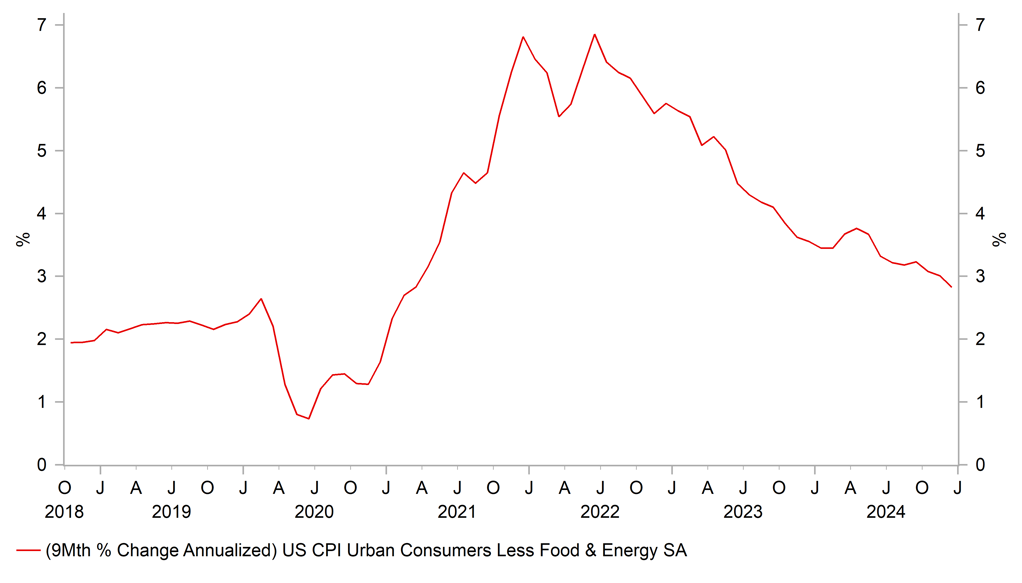 US bond yields also dropped sharply yesterday resulting in the 10-year US Treasury yield falling back to 4.65% from the high earlier this week set at 4.81%. The US rate market has moved to price back in a higher probability that the Fed will follow through with plans to deliver two further rate cuts this year after US core inflation slowed for the second consecutive month in December helping to further dampen concerns over the stronger inflation prints recorded in September and October. The US rate market still expects the Fed to wait until Q2 to deliver the next rate cut. The recent pick-up in employment growth if sustained and Trump’s initial policy plans are expected to provide a higher hurdle for the Fed to lower rates further at the start of this year. The Fed will be reassured though by further evidence that underlying inflation pressures continue to slow. Core inflation slowed to +0.23%M/M in December. The breakdown revealed that core goods inflation increased by +0.05%M/M and core services inflation by +0.27%M/M. The core services ex-housing measure that the Fed has emphasized in the past still came in weaker than expected at +0.21%M/M despite an acceleration in airfares. Together with the softer PPI report for December, it points to an increase in the core PCE deflator of just +0.19%M//M in December. The sharp correction lower for US yields did initially trigger a sell-off for the US dollar but weakness proved short-lived. It highlights that it will take more than one month of softer US inflation to significantly undermine current bullish market sentiment towards the US dollar.