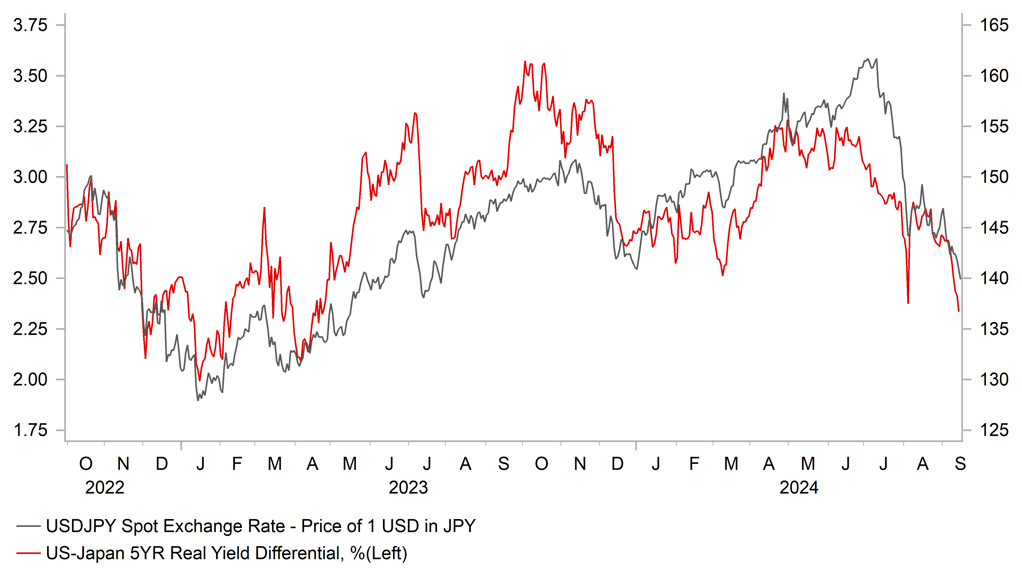 The US dollar has continued to weaken at the start of a pivotal week for the direction of Fed policy. It has resulted in USD/JPY falling back below the 140.00-level for the first time since the end of July of last year. The US dollar sell -off has been encouraged by building market expectations that the Fed could start their rate cut cycle this week by delivering a larger 50bp cut. The US rate market is currently pricing in around 40bps of cuts ahead of this week’s FOMC meeting indicating that market participants now judge it more likely than not that the Fed will deliver a larger 50bps cut. The dovish repricing of US rate market expectations was encouraged at the end of last week by the Wall Street Journal article by Nick Timiraos (“The Fed’s rate cut dilemma: Start big or small?”). The article has been interpreted by market participants as being an orchestrated move by the Fed given this journalist is known to have Fed links. The article also quotes Jon Faust who served as a senior advisory to Fed Chair Powell until earlier this year stating that the decision next week between 25/50bps is “a close call”.